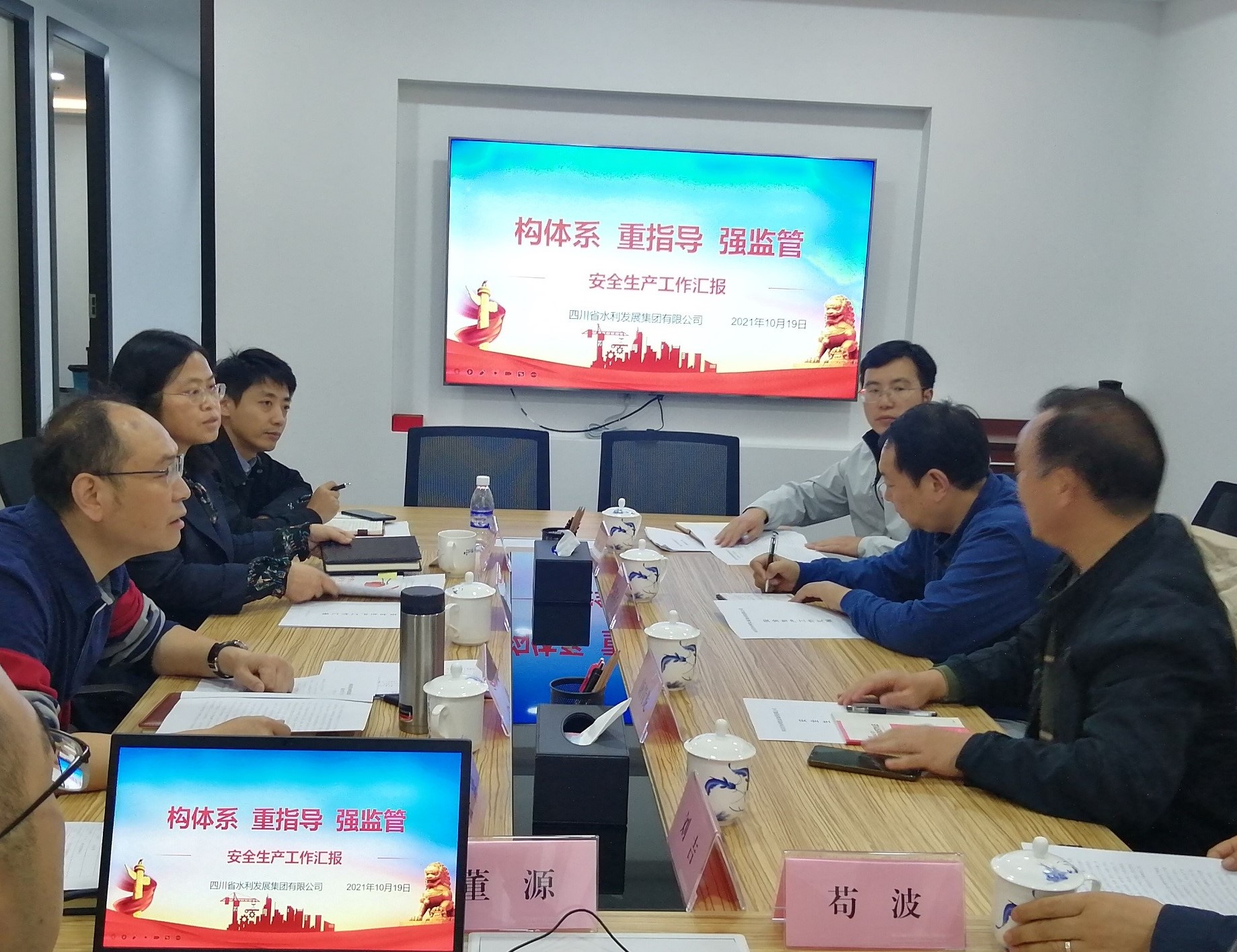 省水利廳二級調(diào)研員唐青龍、朱瑞宇、審監(jiān)處、質(zhì)安中心,集團(tuán)副總經(jīng)理隆文非,建設(shè)管理部、質(zhì)量安全環(huán)保部等相關(guān)同志參加暗訪和會議。