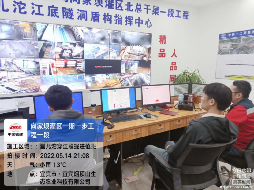 5月14日18點,宜賓市防汛抗旱指揮部辦公室發(fā)布關于做好洪峰過境防范應對工作的緊急通知,預計14日21時岷江出現(xiàn)洪峰,預報洪峰流量7590m3 /s,洪峰水位278.32m(警戒水位283.85m),水位變幅2.70m。汛情就是命令。向家壩灌區(qū)公司防汛工作領導小組庚即啟動應急預案,第一時間將水情信息通報給貓兒沱江底隧洞作業(yè)現(xiàn)場,并按預案迅速開展應對工作。貓兒沱工地臨時黨支部也迅速行動起來,黨員突擊隊的隊員們主動要求參與值班,及時準確將水位監(jiān)測信息反饋給現(xiàn)場盾構機操作人員。在施工現(xiàn)場,操作人員實時調(diào)整盾構掘進參數(shù),并全過程監(jiān)控掘進情況,有效避免盾構下穿岷江段切口水壓不穩(wěn)定造成安全風險。15日凌晨3點,通夜值守人員全神貫注,岷江水位上漲3.1m,項目施工穩(wěn)步安全有序進行。此后,上漲水位逐漸下降。但值守人員仍未懈怠,至今洪峰過境,水位恢復正常。
