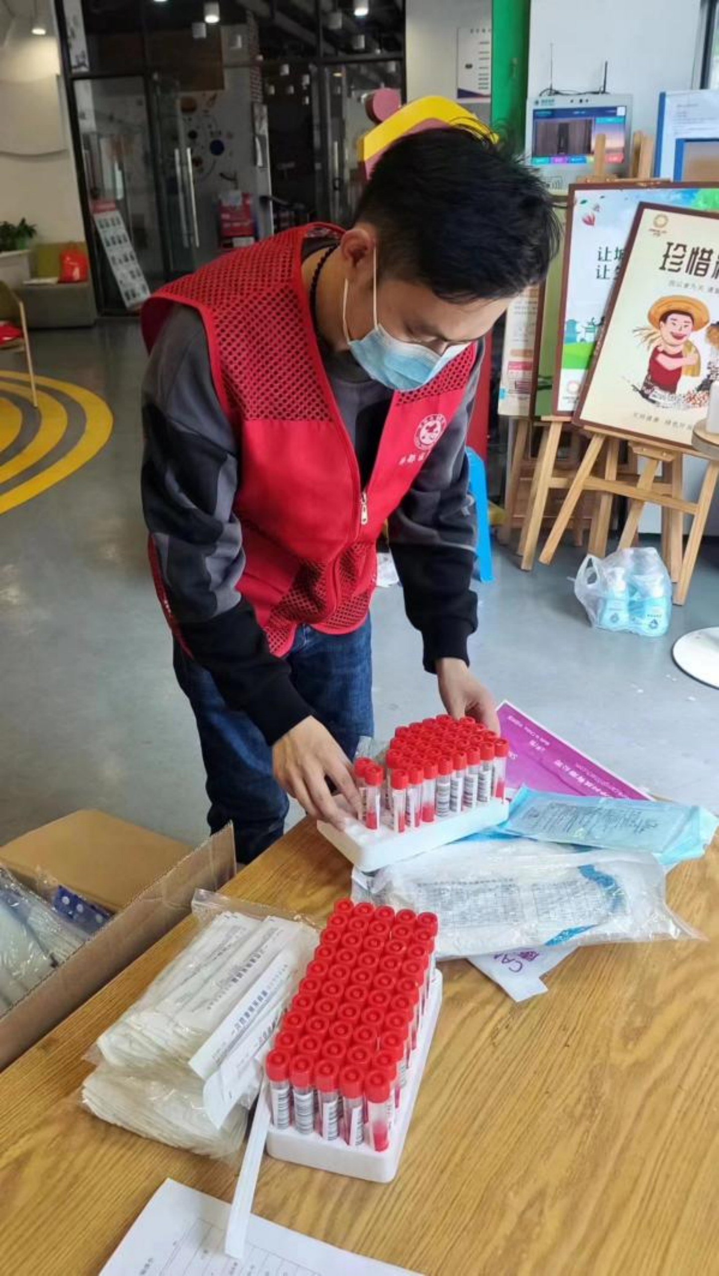 工程設(shè)計二分院黃志剛正在發(fā)放核酸檢測棉簽