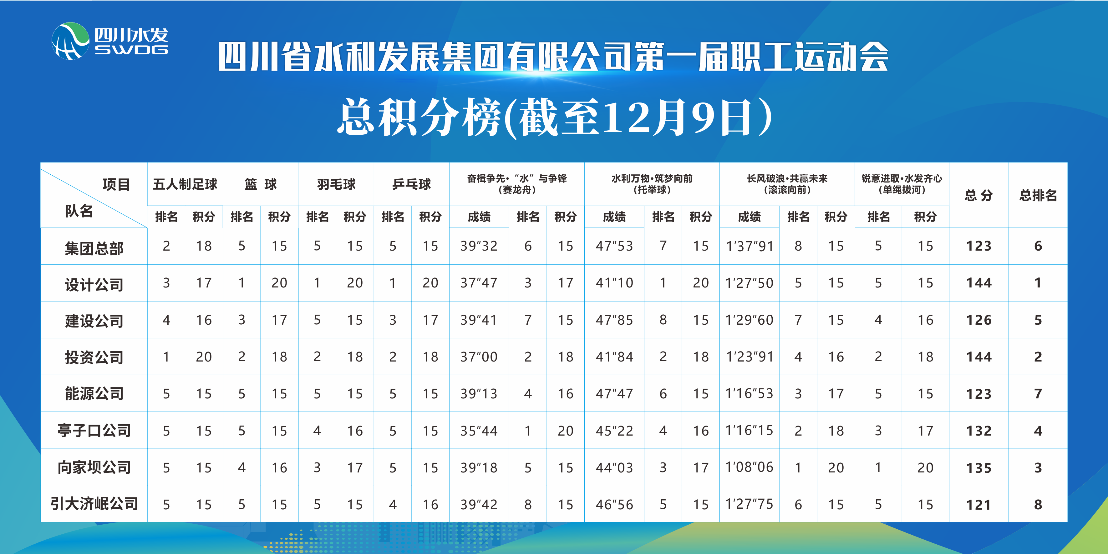 凝心聚力促發(fā)展,團結(jié)奮斗向未來。12月9日,集團第一屆職工運動會在成都市水井坊錦江體育公園隆重開幕。