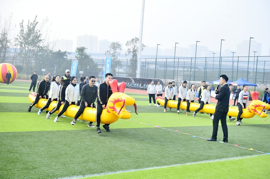 在趣味比賽中,水利萬物·筑夢向前(托舉球)項目各個參賽隊齊心協(xié)力,一起托舉起巨大球體穩(wěn)步前行,克服各種不確定性阻力最終到達終點,迎來陣陣掌聲;在銳意進取·水發(fā)齊心(單繩拔河)項目比賽現(xiàn)場,抓牢賽繩,勒繩下腰,降低重心,齊心協(xié)力往后“拔”,歡呼聲、加油聲此起彼伏;奮楫爭先·“水”與爭鋒(賽龍舟)、長風(fēng)破浪·共贏未來(滾滾向前)趣味比賽項目,盡顯“活力水發(fā)·運動水發(fā)”的健康形象。