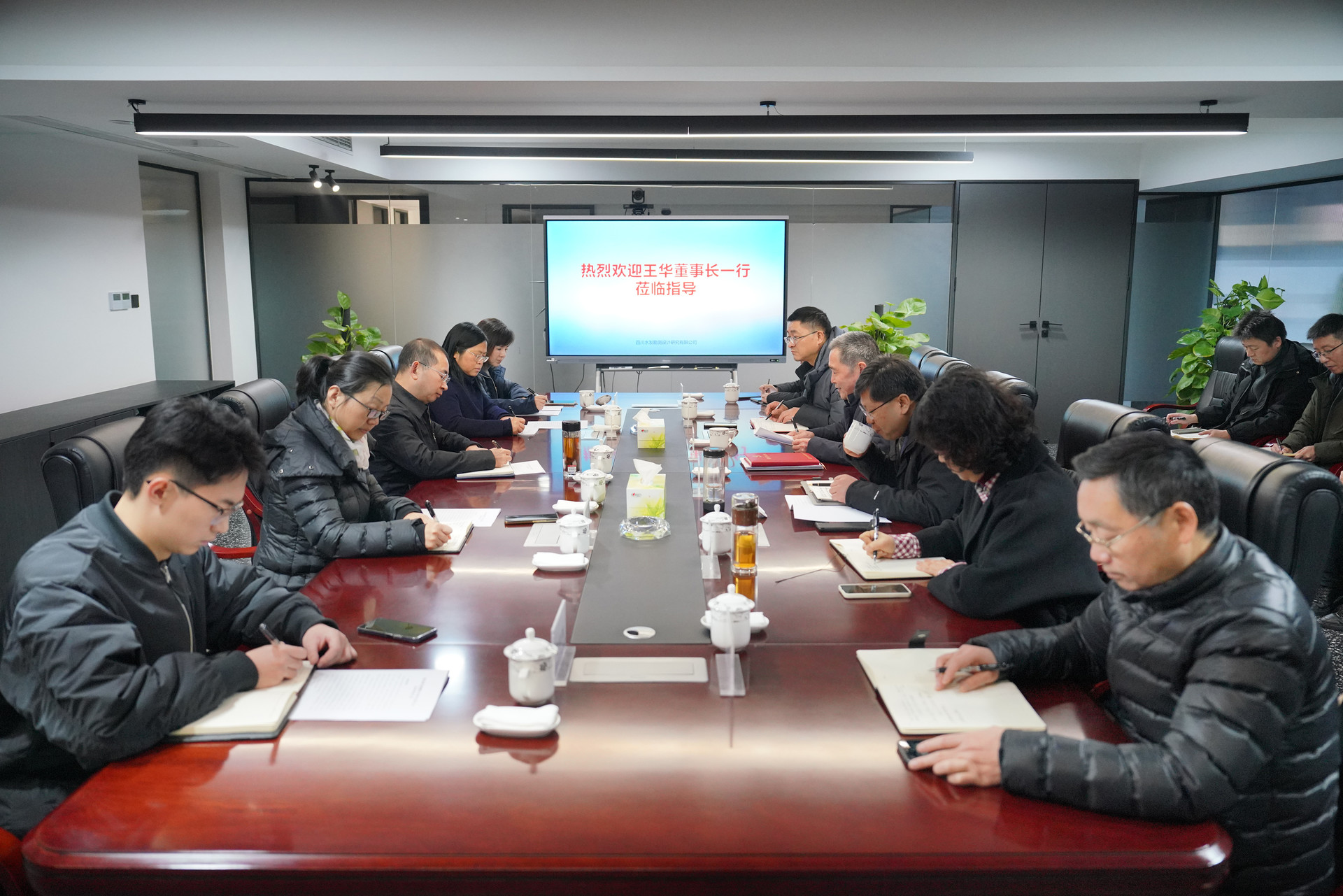 調(diào)研組一行聽取了設(shè)計(jì)公司關(guān)于改革發(fā)展和重大項(xiàng)目推進(jìn)情況匯報(bào)后,王華董事長(zhǎng)指出,設(shè)計(jì)公司在六十年的發(fā)展歷程中,立足四川水利建設(shè),風(fēng)雨兼程、實(shí)干擔(dān)當(dāng)、碩果累累,對(duì)設(shè)計(jì)公司改革改制三年以來(lái)取得的階段性發(fā)展成果表示認(rèn)可。