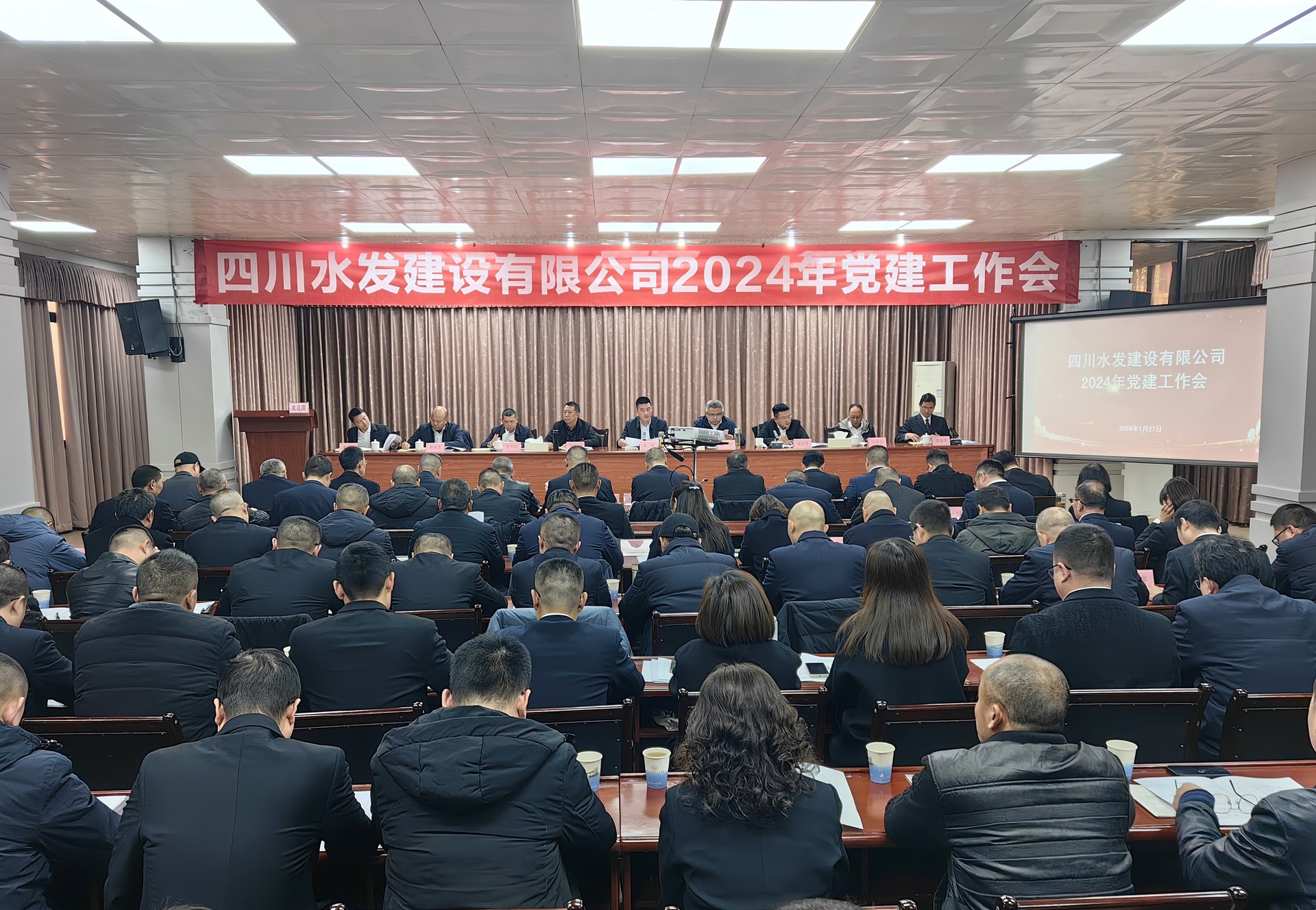 建設公司領導班子,各單位黨政工負責人(含黨支部副書記),部分項目部經(jīng)理及支部(副)書記,部分中層干部,各黨支部紀檢(委)員,部分職工代表近100人參會。