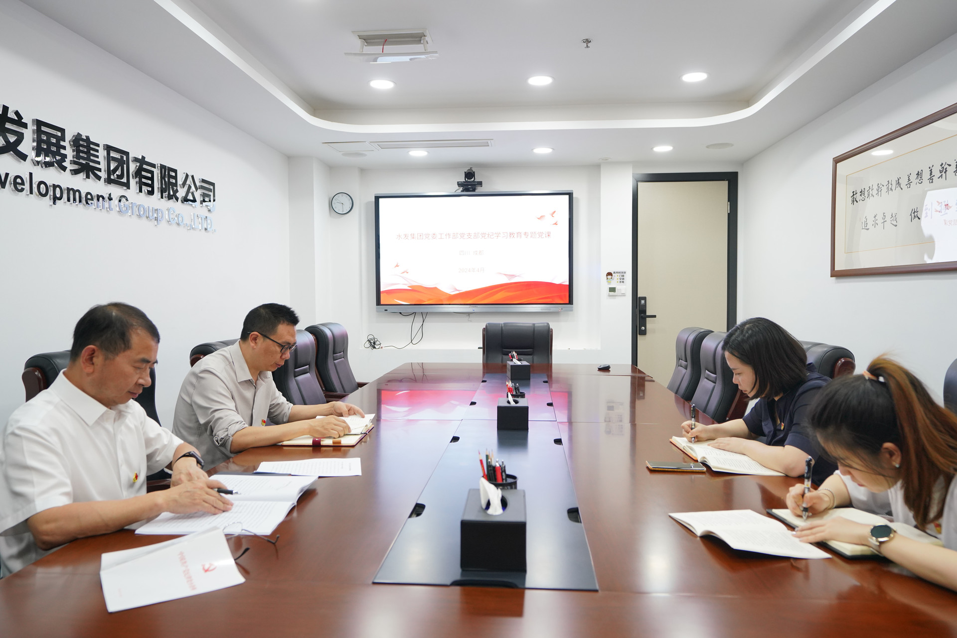 2024年4月28日,集團(tuán)總部黨委工作部黨支部在集團(tuán)一會(huì)議室召開(kāi)黨紀(jì)學(xué)習(xí)教育專(zhuān)題黨員大會(huì)。集團(tuán)黨委書(shū)記、董事長(zhǎng)王華以普通黨員身份參加會(huì)議并作專(zhuān)題黨課。