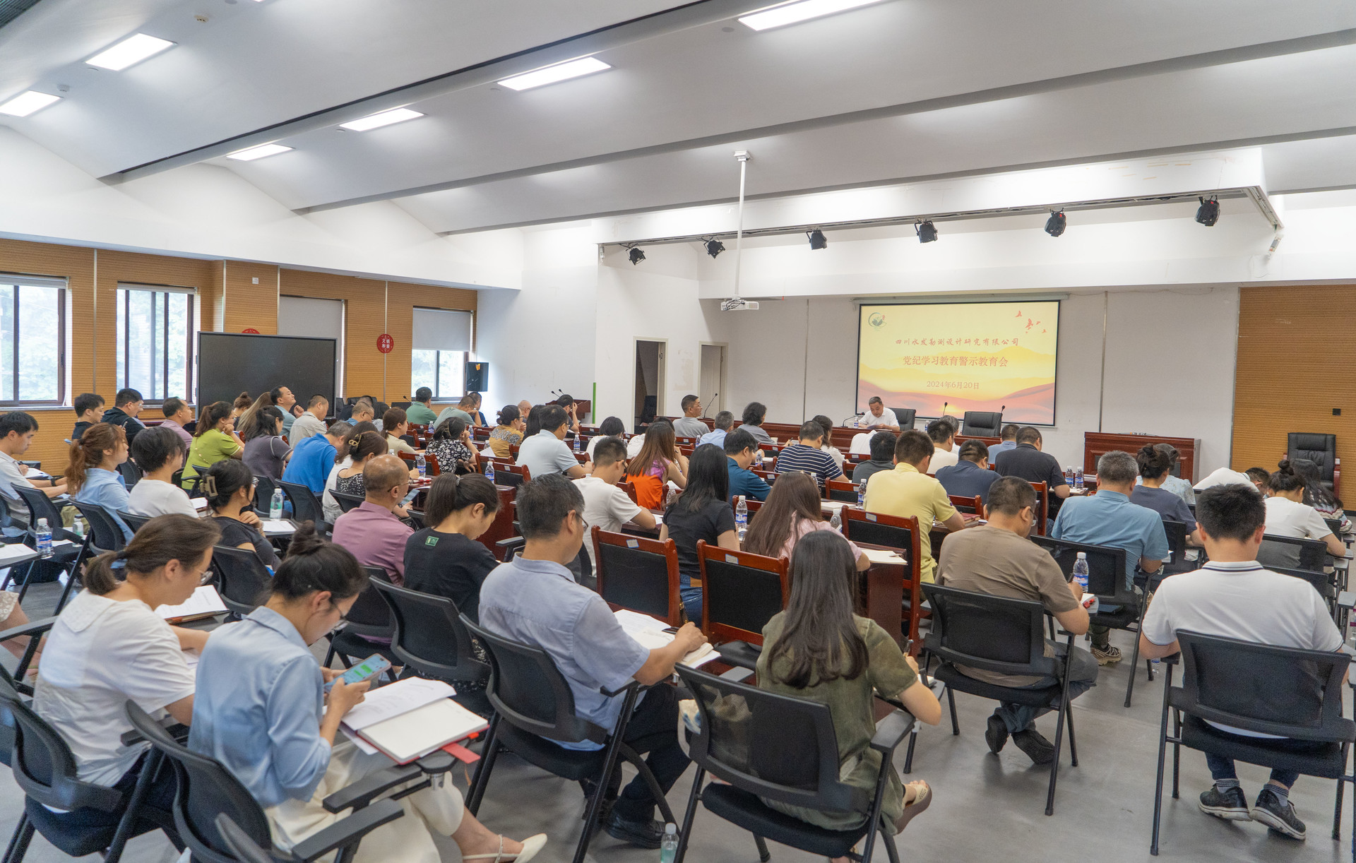 高希章領(lǐng)學(xué)了習(xí)近平總書記關(guān)于全面加強(qiáng)黨的紀(jì)律的重要論述,傳達(dá)了廳黨組、集團(tuán)黨委警示教育會(huì)議精神。黨委委員、紀(jì)委書記姚磊通報(bào)了3起水利工程建設(shè)項(xiàng)目典型案例。全體參會(huì)人員集中觀看了警示教育片《持續(xù)發(fā)力 縱深推進(jìn)》。