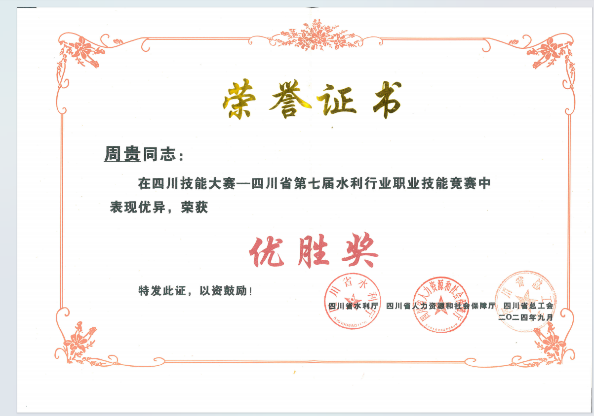 四川技能大賽——四川省第七屆水利行業(yè)職業(yè)技能競(jìng)賽,由四川省水利廳、四川省人力資源和社會(huì)保障廳、四川省總工會(huì)聯(lián)合舉辦,是四川省水利行業(yè)級(jí)別最高、規(guī)模最大、影響最廣的職業(yè)技能賽事。本次競(jìng)賽分為理論考核和技能操作兩部分進(jìn)行,匯聚了全省水利行業(yè)從事水工閘門運(yùn)行一線技能工作的37個(gè)單位82名參賽選手。經(jīng)過預(yù)賽、決賽兩個(gè)階段的激烈角逐,集團(tuán)組織參賽選手向家壩公司周貴在本次競(jìng)賽中喜獲優(yōu)勝獎(jiǎng)。